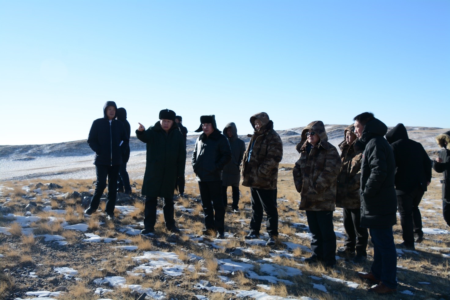2018年1月19日,內(nèi)蒙古巴彥淖爾烏拉特中旗,以旗長閆永春為首的內(nèi)蒙古自治區(qū)巴彥淖爾盟烏拉特中旗政府代表團一行十二人來到大烏淀石墨礦進行實地考察。當(dāng)?shù)貧鉁亓阆?0℃,天寒地凍,閆旗長及代表團的各位領(lǐng)導(dǎo)不懼寒風(fēng)詳細聽取了豐域烯碳顧巖董事長對礦區(qū)及規(guī)劃的介紹。